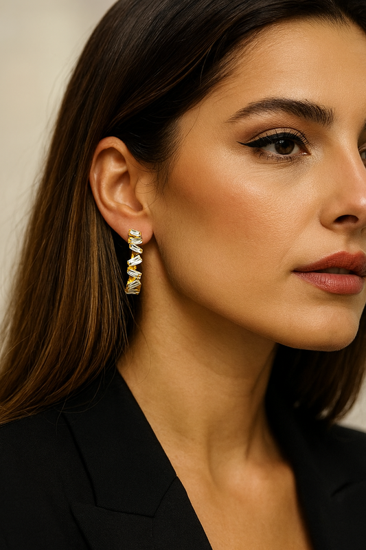 • DUAL-TONE OVAL HOOPS EARRRINGS